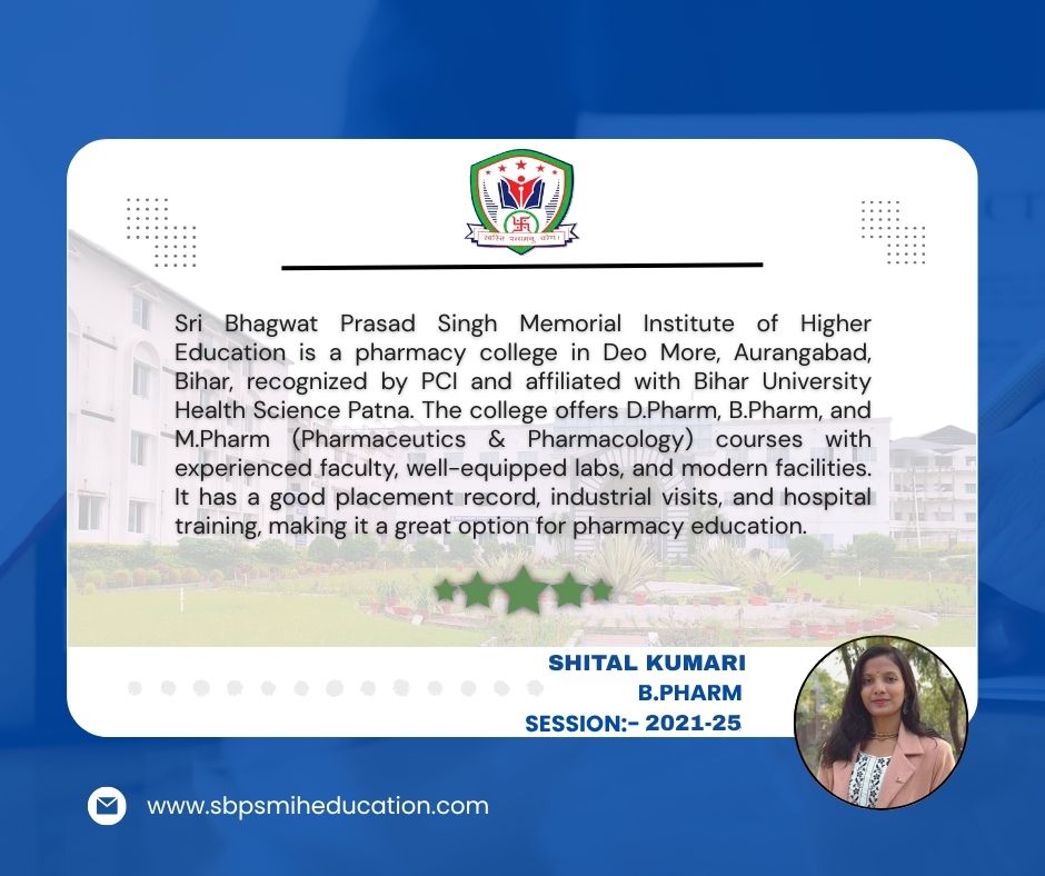 The institute offers D.Pharm and B.Pharm programs, both approved by the Pharmacy Council of India (PCI), New Delhi. Graduates